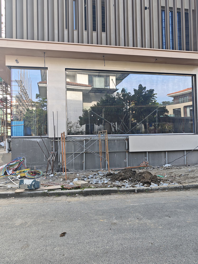 此次需安装的两块“玻璃巨兽”,尺寸分别达6.9×3.3米与7.2×3.3米,单块重量逼近2吨,且采用15+15超厚双层玻璃工艺。安装场景更是挑战重重: